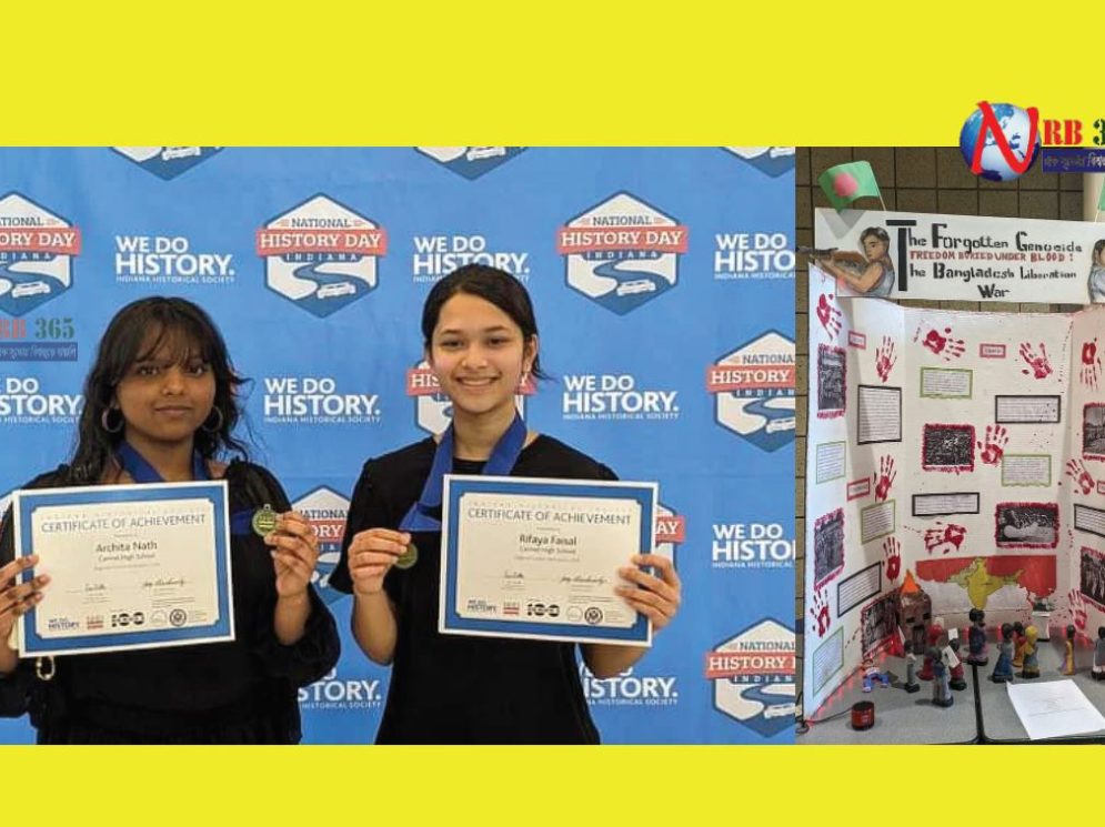 আমেরিকা ডেস্ক: দুজনেরই বাবা-মা বাংলাদেশি। কিন্তু তারা জন্মেছে ভিন্ন দুটি দেশে। অর্চিতা শ্বেতার জন্ম সিঙ্গাপুরে। অর্চিতার বাবা চন্দ্রনাথ। আর রিফাইয়ার বাবা আবু নাসের ফয়সাল। দুজনই এখন পরিবার নিয়ে বাস করছেন যুক্তরাষ্ট্রের ইন্ডিয়ানা অঙ্গরাজ্যে। অর্চিতা আর রিফাইয়া… দুই কিশোরী জয় করেছে স্বর্ণপদক। কারমেল হাই স্কুলের এই দুই শিক্ষার্থী স্বর্ণপদক জয় করেছে বাংলাদেশের মুক্তিযুদ্ধ নিয়ে ভাস্কর্য নির্মাণ করে। প্রতিযোগিতার আয়োজক ছিল ইন্ডিয়ানা হিস্ট্রিক্যাল সোসাইটি।