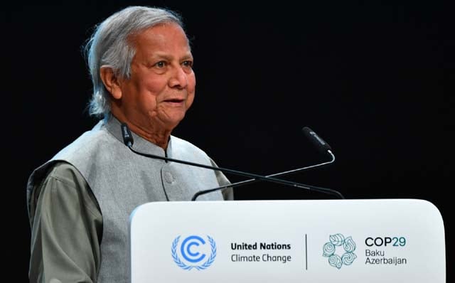 বৈশ্বিক জলবায়ু পরিবর্তন সম্পর্কে প্রধান উপদেষ্টা বলেন, জলবায়ু সংকট তীব্রতর হচ্ছে এবং সে কারণে মানব সভ্যতা মারাত্মক ঝুঁকির মধ্যে রয়েছে। মানুষ আত্ম-বিধ্বংসী মূল্যবোধের প্রচার চালিয়ে যাচ্ছে।