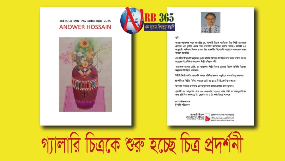 ২৫ জানুয়ারি শনিবার বিকেল সাড়ে ৪টায় শুরু হবে প্রদর্শনী। গ্যালারি চিত্রকে আয়োজিত প্রদর্শনীতে স্থান পাচ্ছে বিভিন্ন সময়ে শিল্পীর আঁকা ১০০টি চিত্রকর্ম।