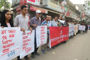 শুক্রবার ১৪ মার্চ লোহারপুল এলাকায় আয়োজিত প্রতিবাদী মানববন্ধন ও সমাবেশে বক্তারা এসব কথা বলেন। সিপিবি সূত্রাপুর থানা সভাপতি বিকাশ সাহা সমাবেশে সভাপতিত্ব করেন । গোলাম রাব্বি খানের সঞ্চালনায় বিভিন্ন রাজনৈতিক দল, গণসংগঠন ও সামাজিক সংগঠনের নেতারা এতে বক্তব্য রাখেন।