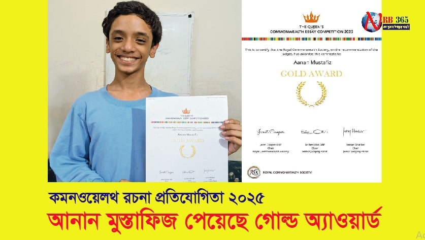 বাংলাদেশের জুনিয়র গ্রেডের শিক্ষার্থী আনান মুস্তাফিজ কুইনস কমনওয়েলথ রচনা প্রতিযোগিতায় গোল্ড অ্যাওয়ার্ড পেয়েছে। রয়্যাল কমনওয়েলথ সোসাইটি থেকে পাঠানো চিঠিতে আনানকে তার এই আন্তর্জাতিক স্বীকৃতির কথা জানিয়েছে। আনান মুস্তাফিজ রাজধানীর একটি ইংরেজি মাধ্যম স্কুলের স্ট্যান্ডার্ড ফাইভের শিক্ষার্থী।